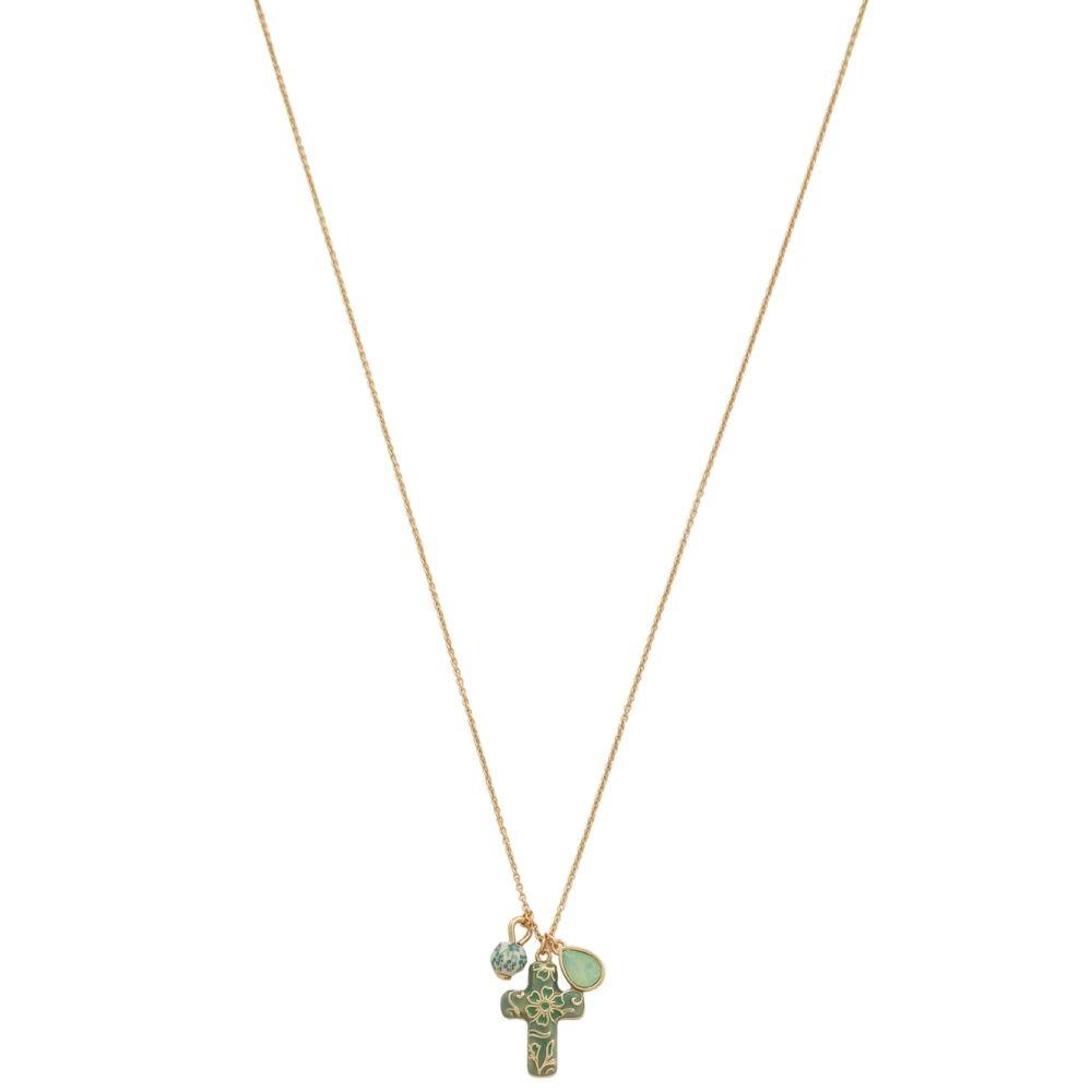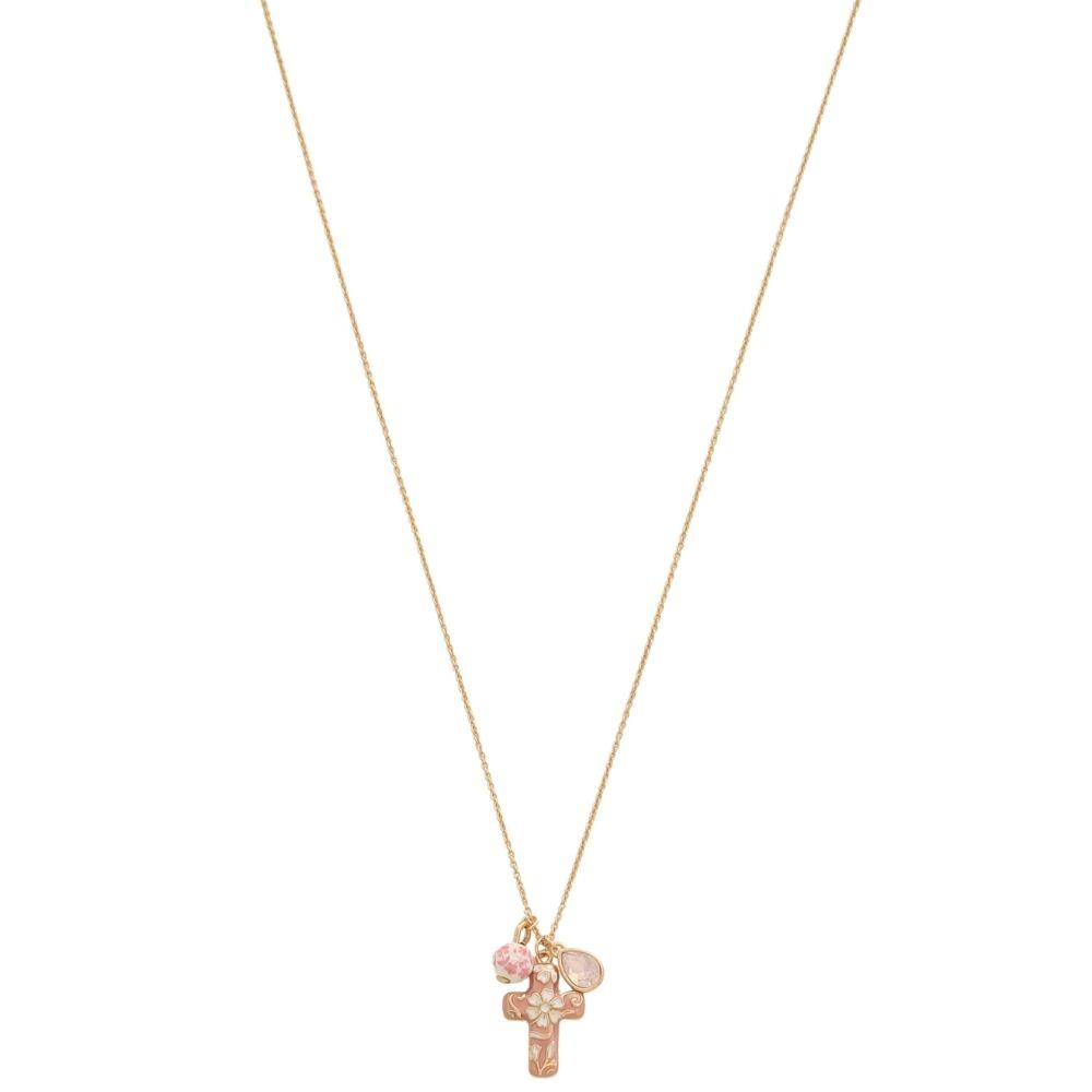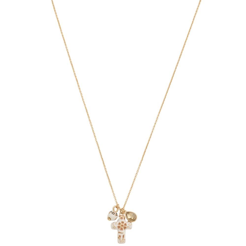 FILIGREE PATTERN CROSS CRYSTAL BEAD NECKLACE