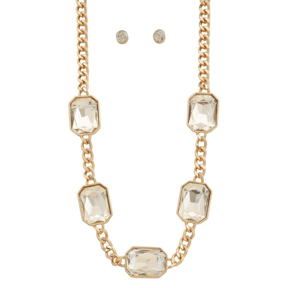 SQUARE STONE PENDANT CHAIN NECKLACE EARRING SET
