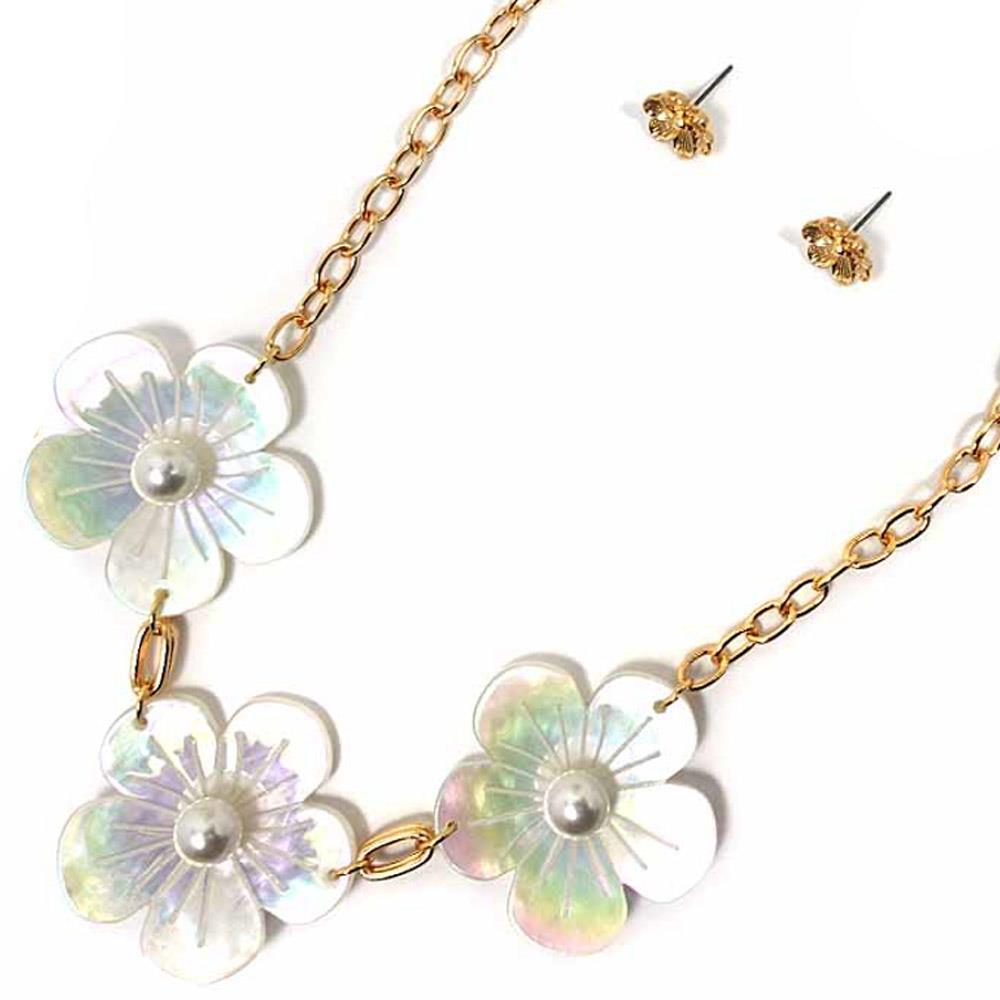 FLOWER PENDANT CHAIN NECKLACE EARRING SET