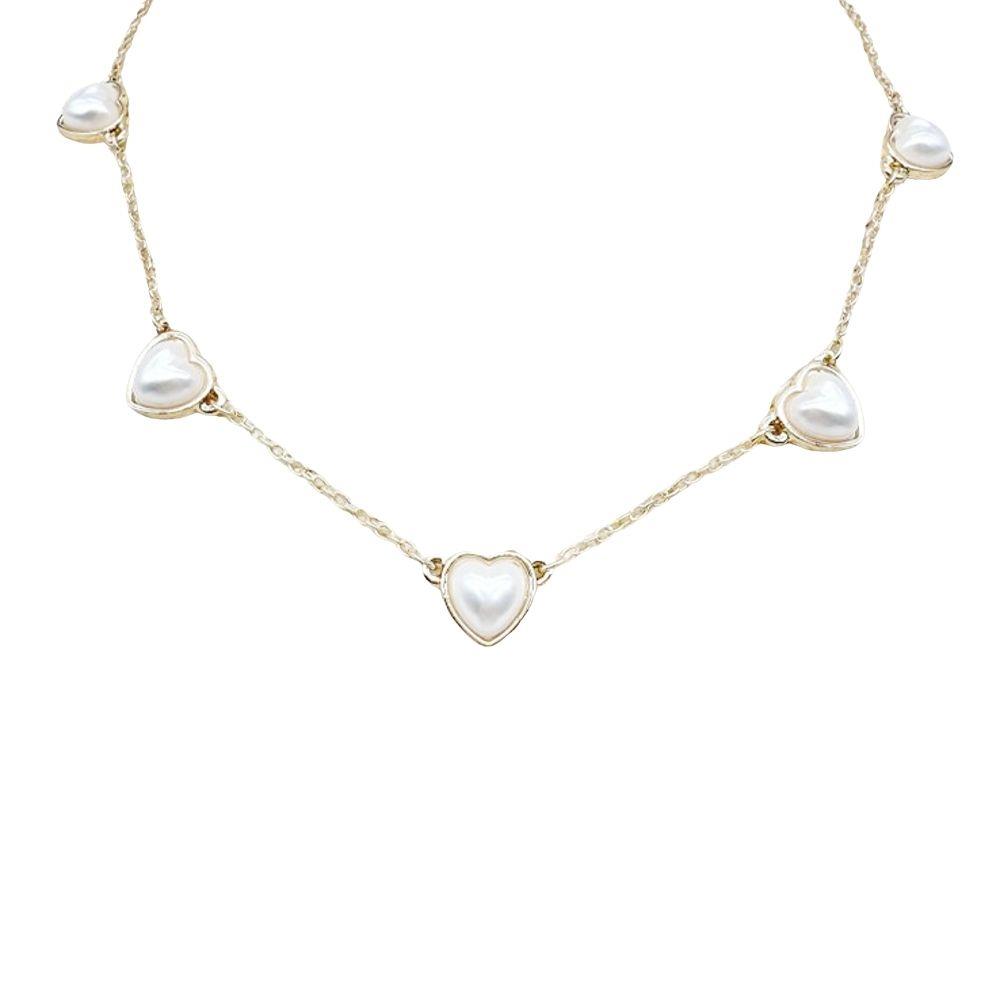 SODAJO TRIPLE HEART PEARL BEAD OVAL LINK GOLD DIPPED NECKLACE