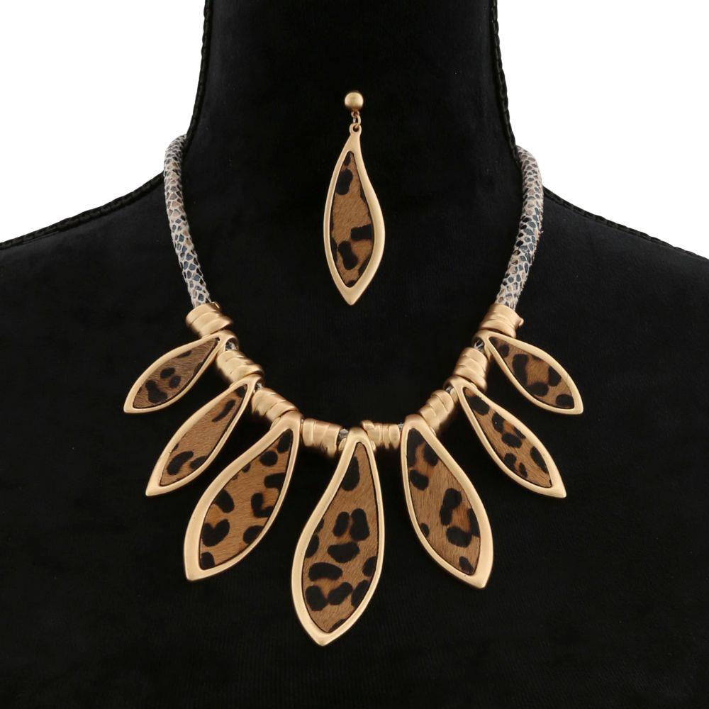 TORTOISE METAL LINK CHAIN LONG NECKLACE EARRING SET