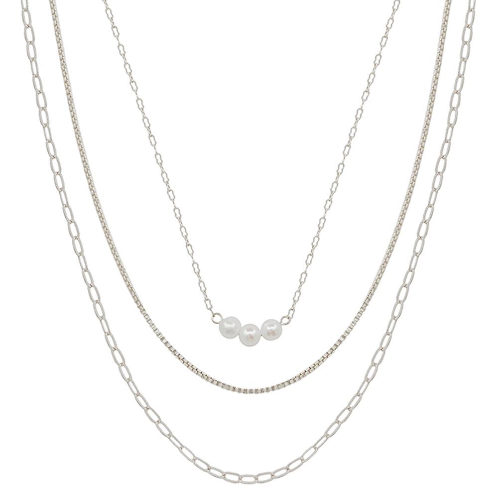 PEARL ACCENT 3 LAYERED SHORT NECKLACE