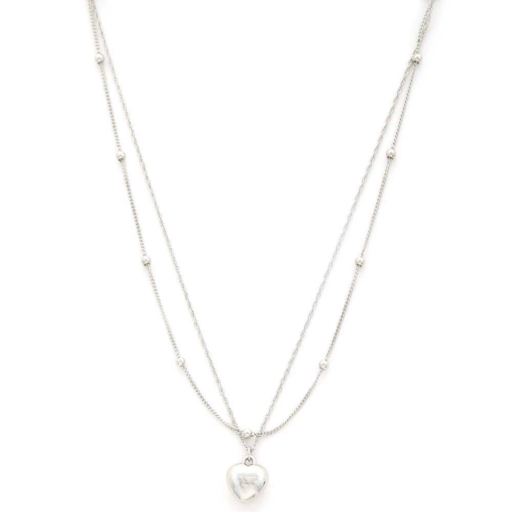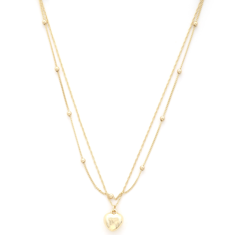 PUFFY HEART CHARM BALL BEAD LAYERED NECKLLACE