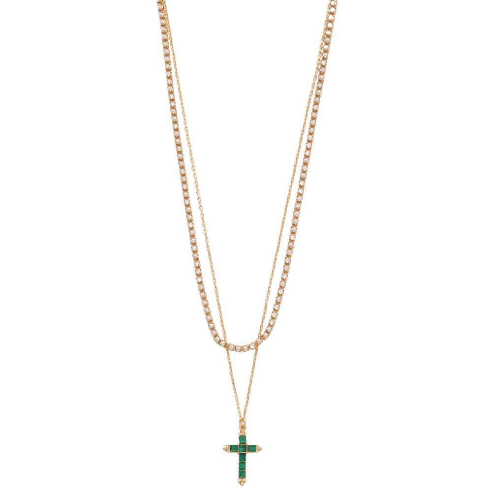 SODAJO CROSS CHARM CRYSTAL LAYERED GOLD DIPPED NECKLACE