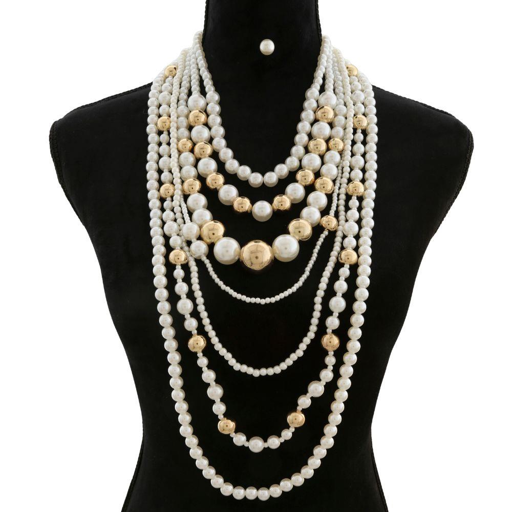 PEARL CRYSTAL BEAD CHAIN LINK LAYERED NECKLACE