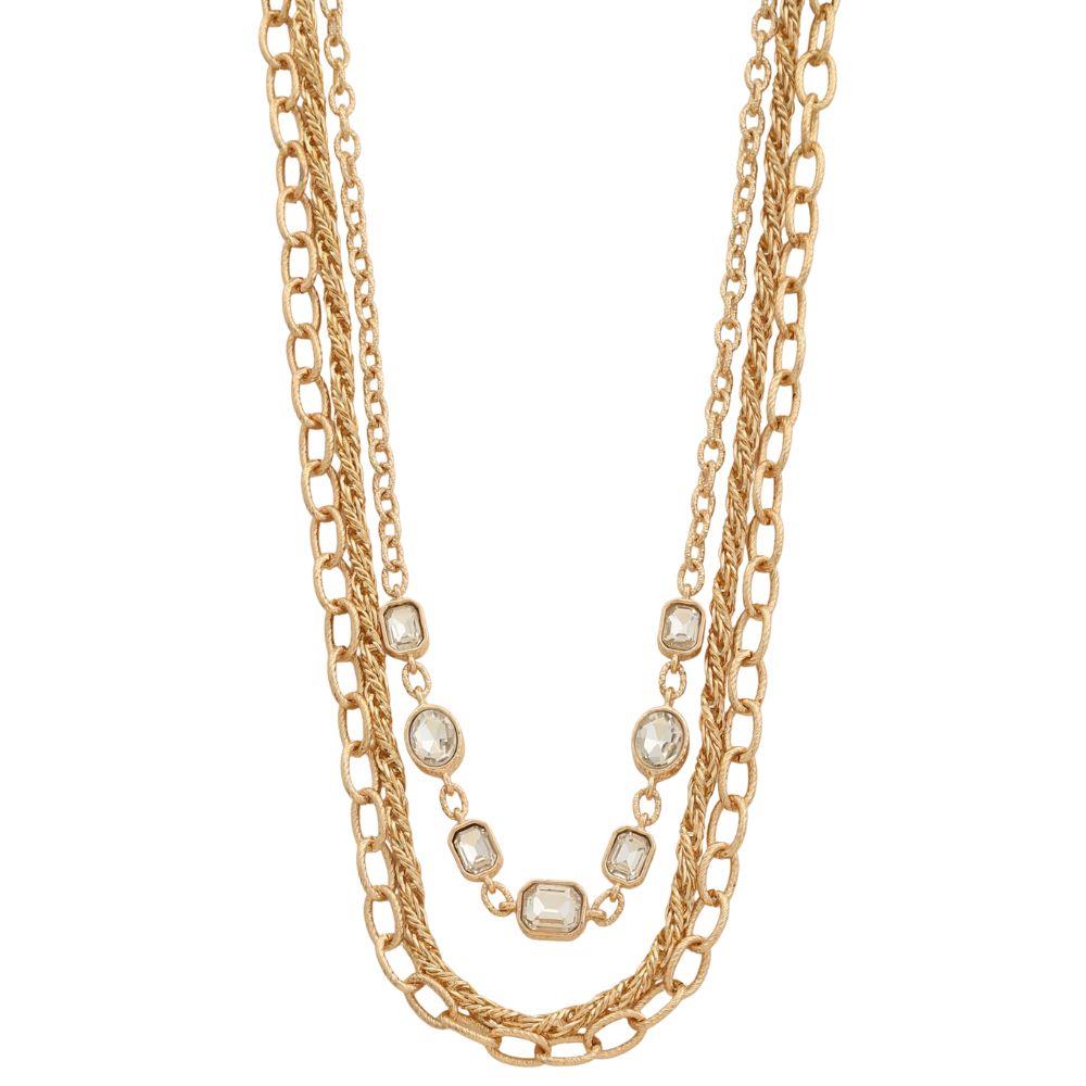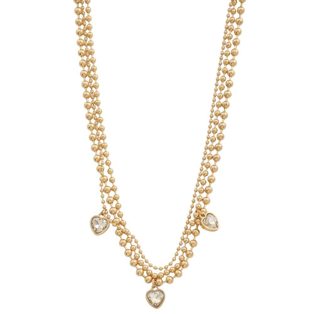 SODAJO BALL BEAD OVAL RHINESTONE LINK LAYERED GOLD DIPPED NECKLACE