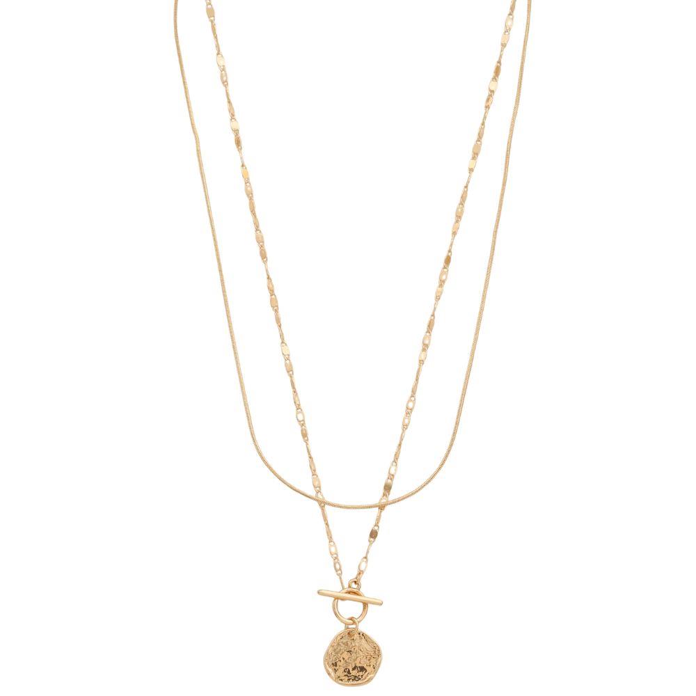SODAJO HAMMERED COIN TOGGLE CLASP BALL BEAD LINK LAYERED GOLD DIPPED NECKLACE