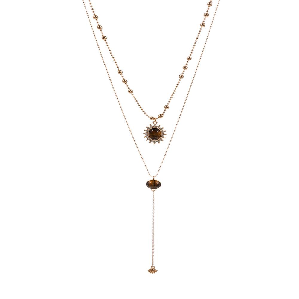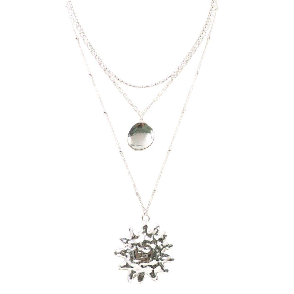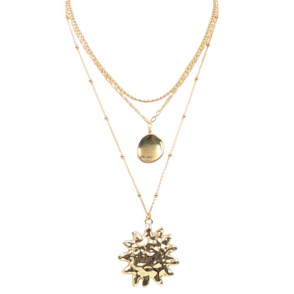 SUN PENDANT LAYERED METAL NECKLACE