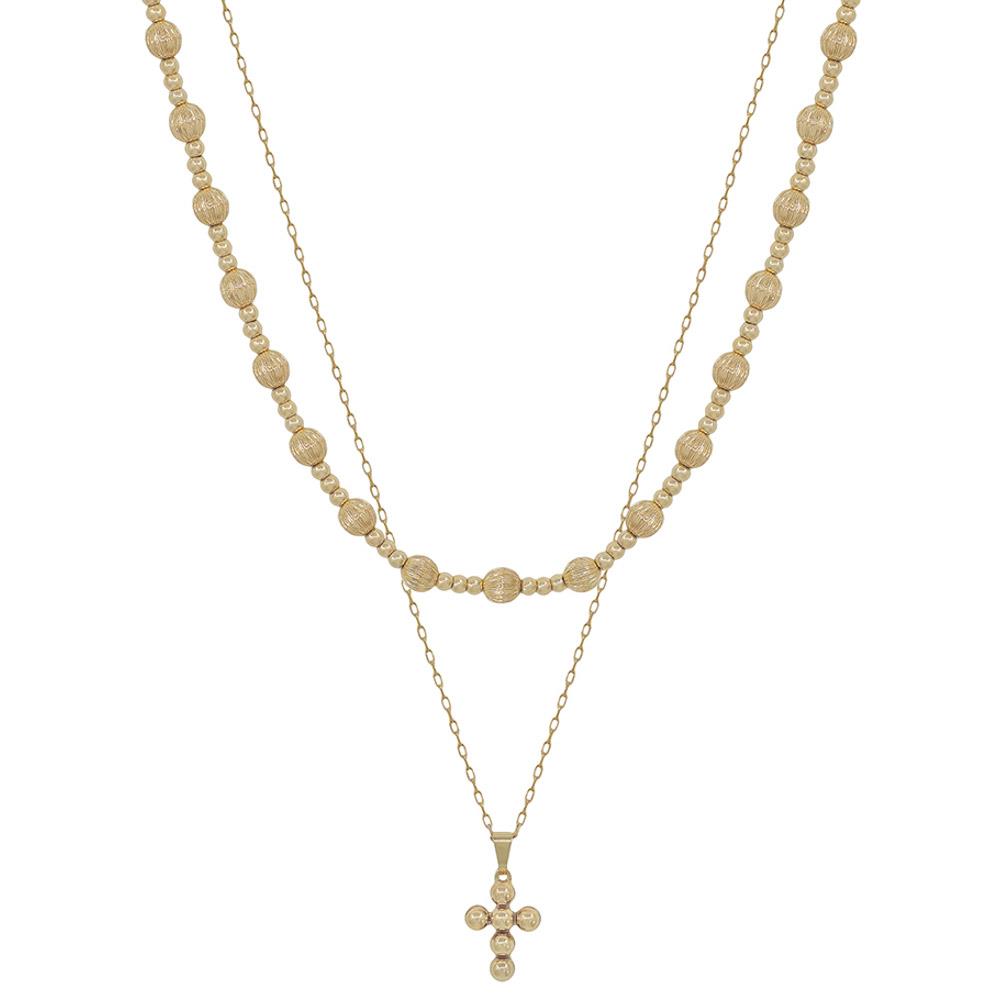 MULTI CROSS CHARM BEADED LAYERED NECKLACE
