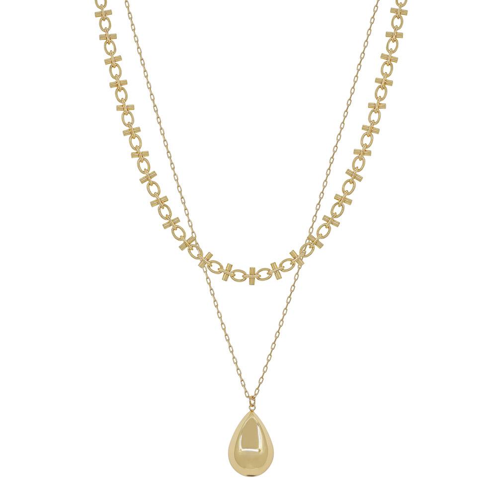 2 LAYERED DELICATE CHAIN ACCENT TEARDROP PENDANT SHORT NECKLACE