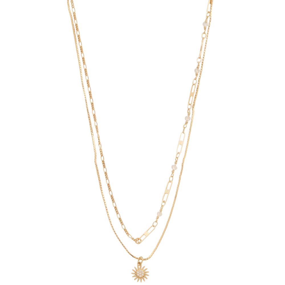 SODAJO RHINESTONE SUN CHARM LAYERED GOLD DIPPED NECKLACE