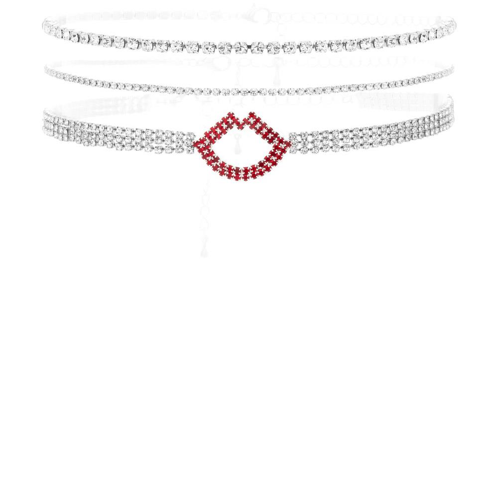 RHINESTONE RED LIPSTICK STACKABLE CHOKER NECKLACE
