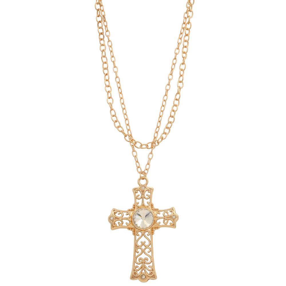 SDJ CROSS PENDANT RHINESTONE LAYERED NECKLACE