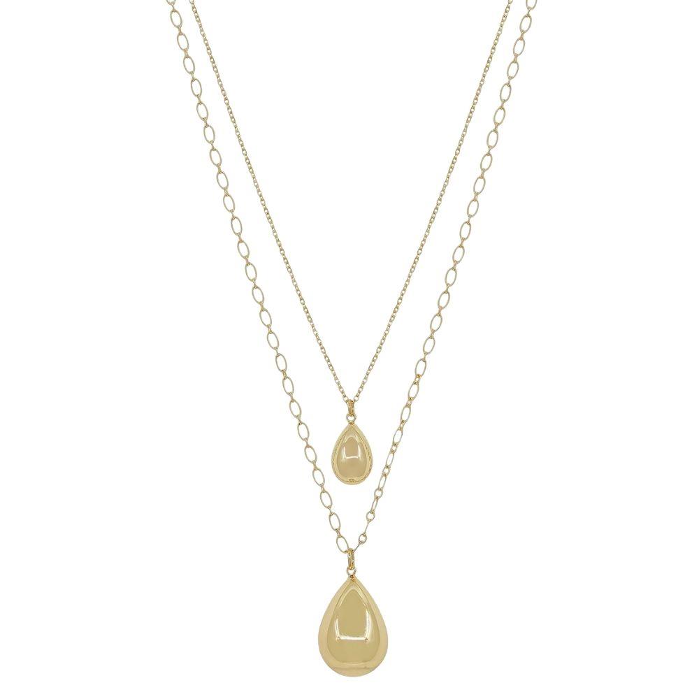 LAYERED DOUBLE TEARDROP PENDANT SHORT NECKLACE