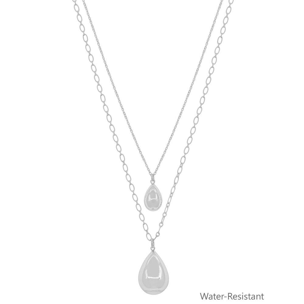 STAINLESS STEEL LAYERED BALL CHAIN AND TEARDROP PENDANT NECKLACE