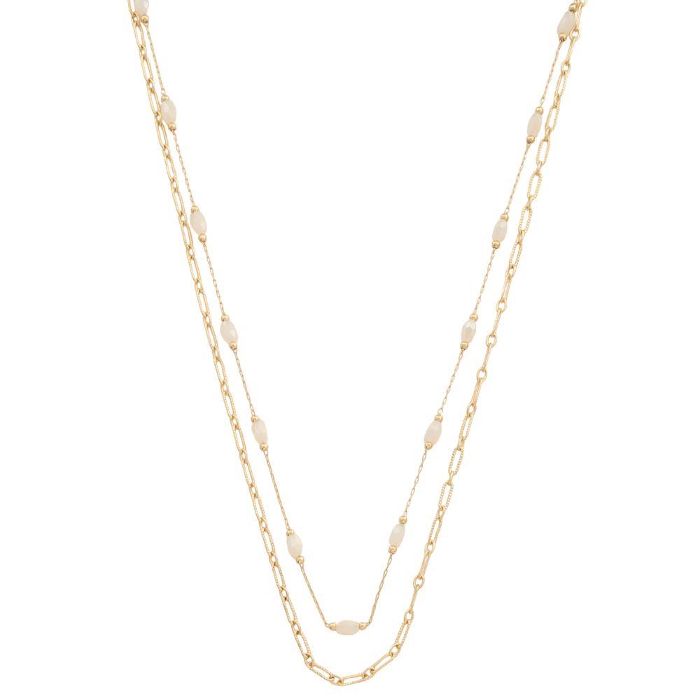 SODAJO PEARL BEAD OVAL LINK LAYERED GOLD DIPPED NECKLACE