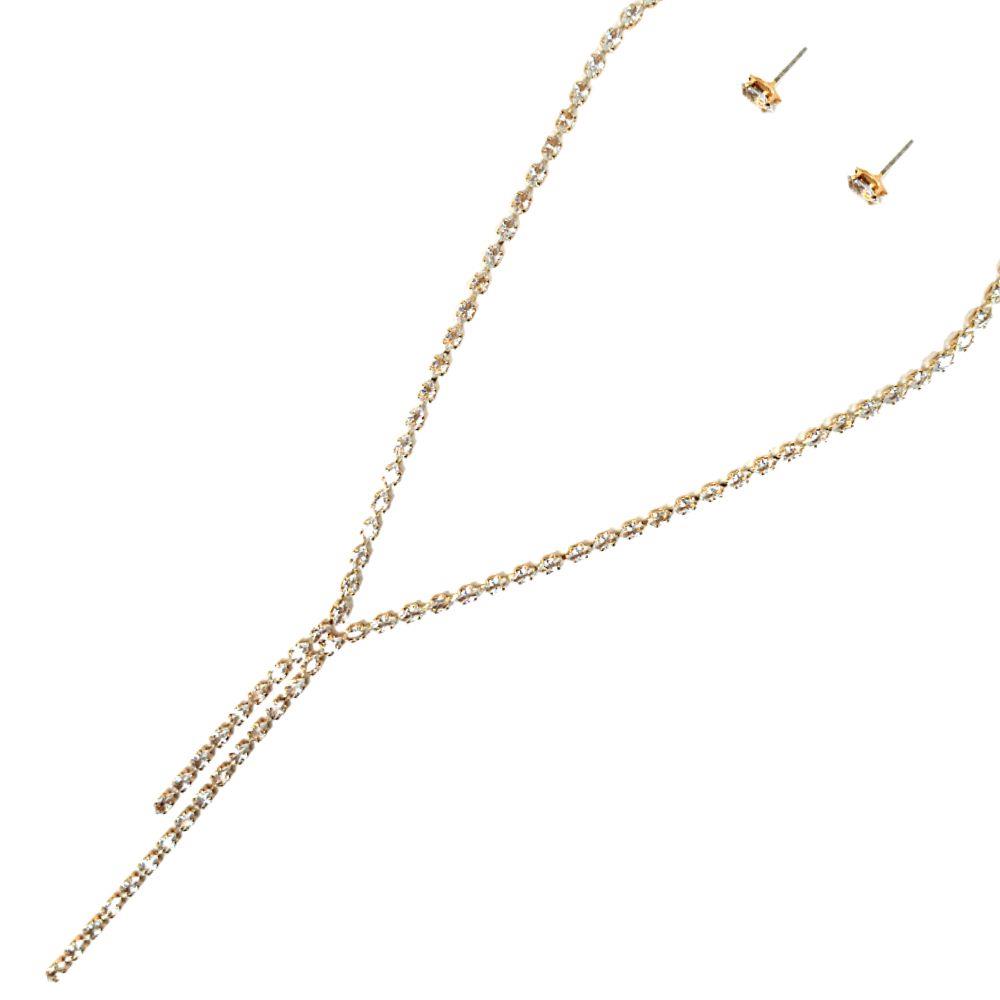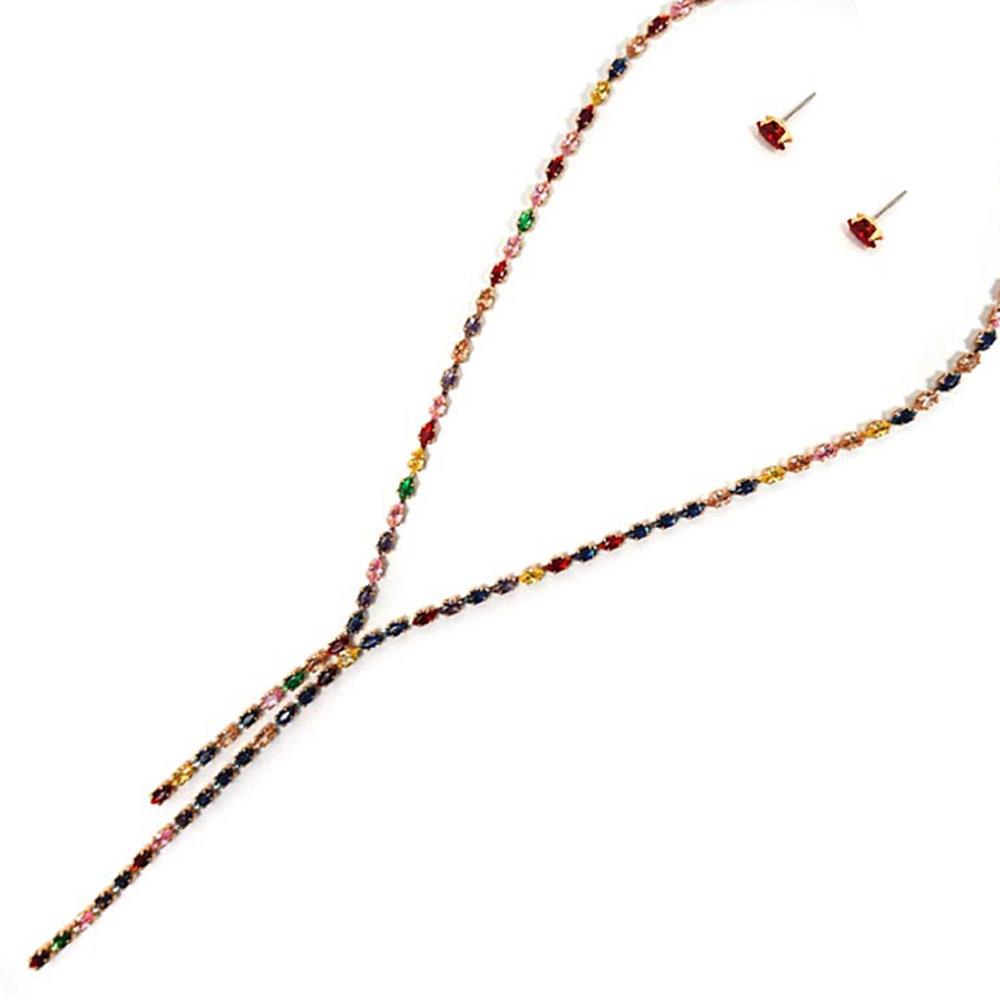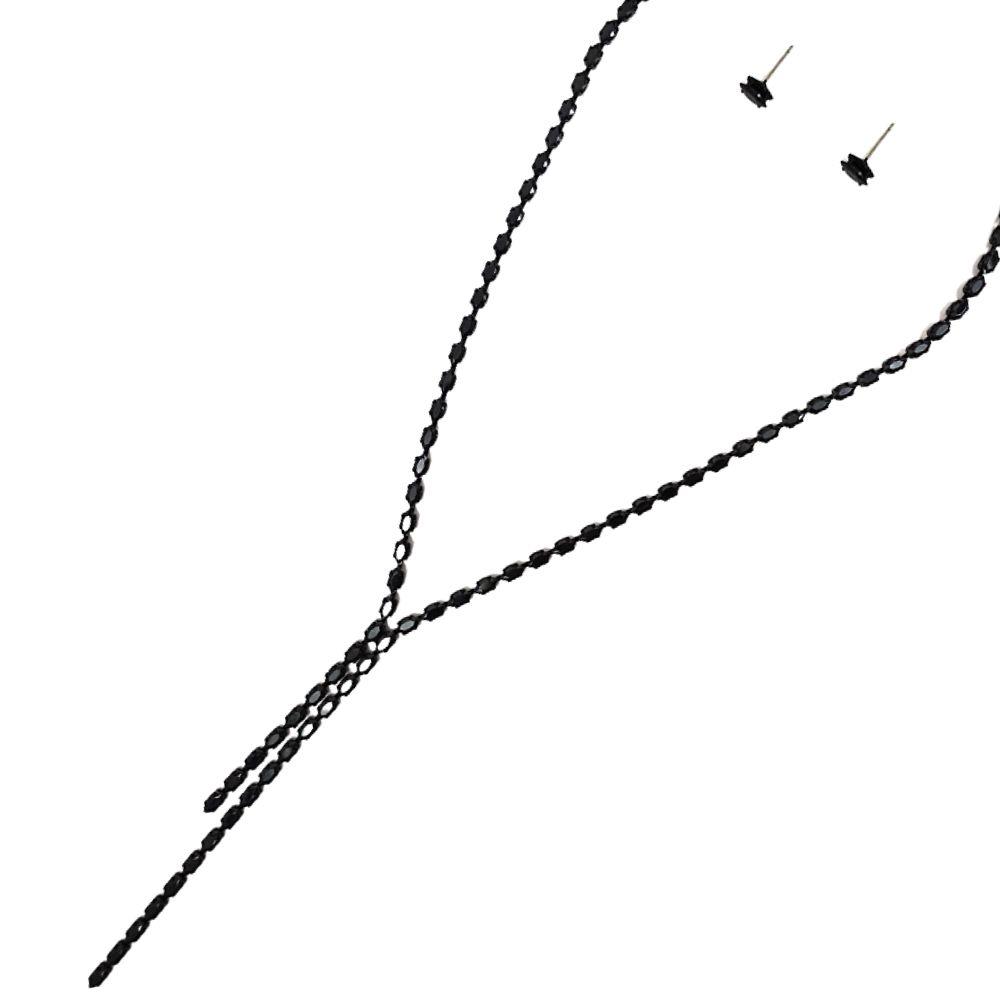 WESTERN STYLE RHINESTONE ADJUSTABLE Y LONG NECKLACE EARRING SET