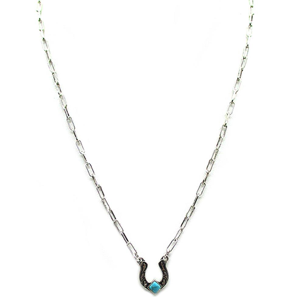 WESTERN STYLE HORSE SHOE PENDANT BEADED NECKLACE