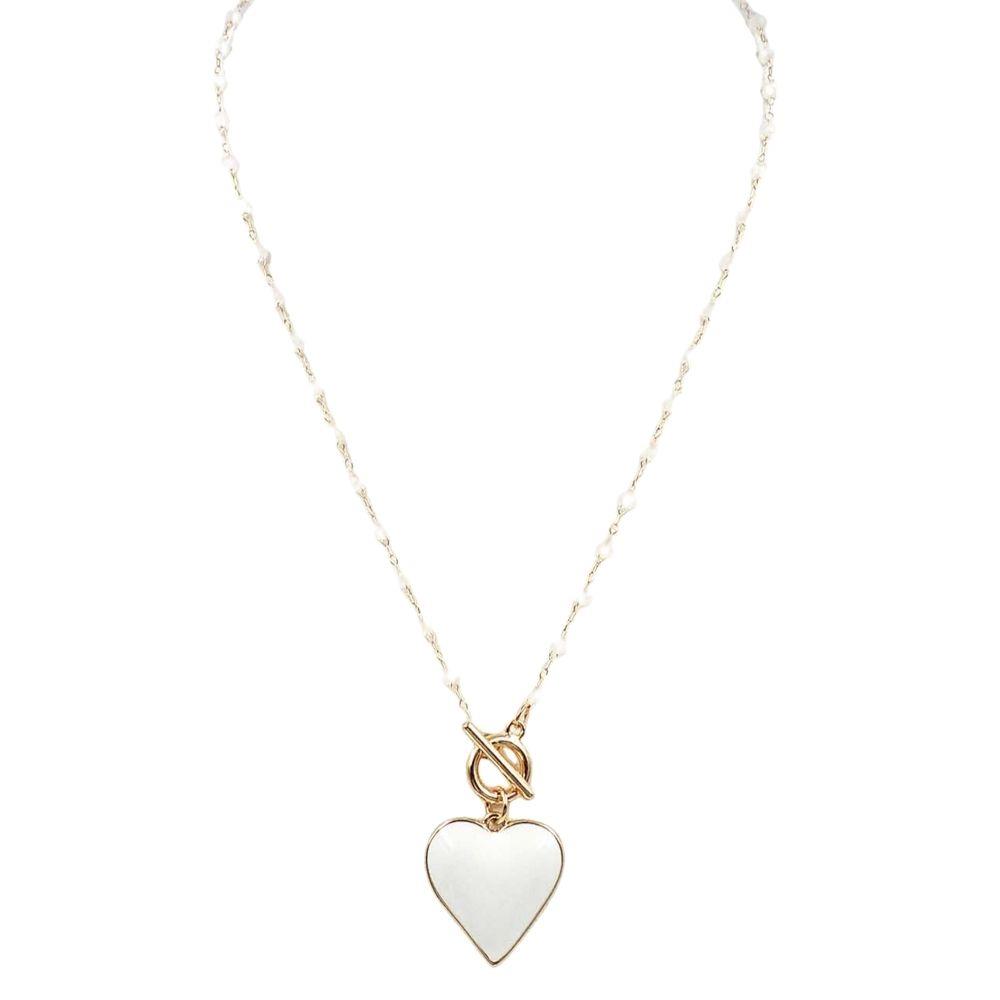 PUFFY HEART PENDANT PEARL BEAD NECKLACE