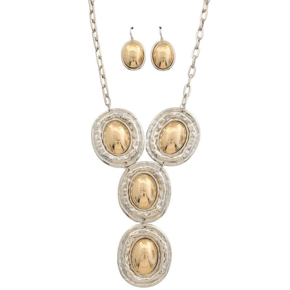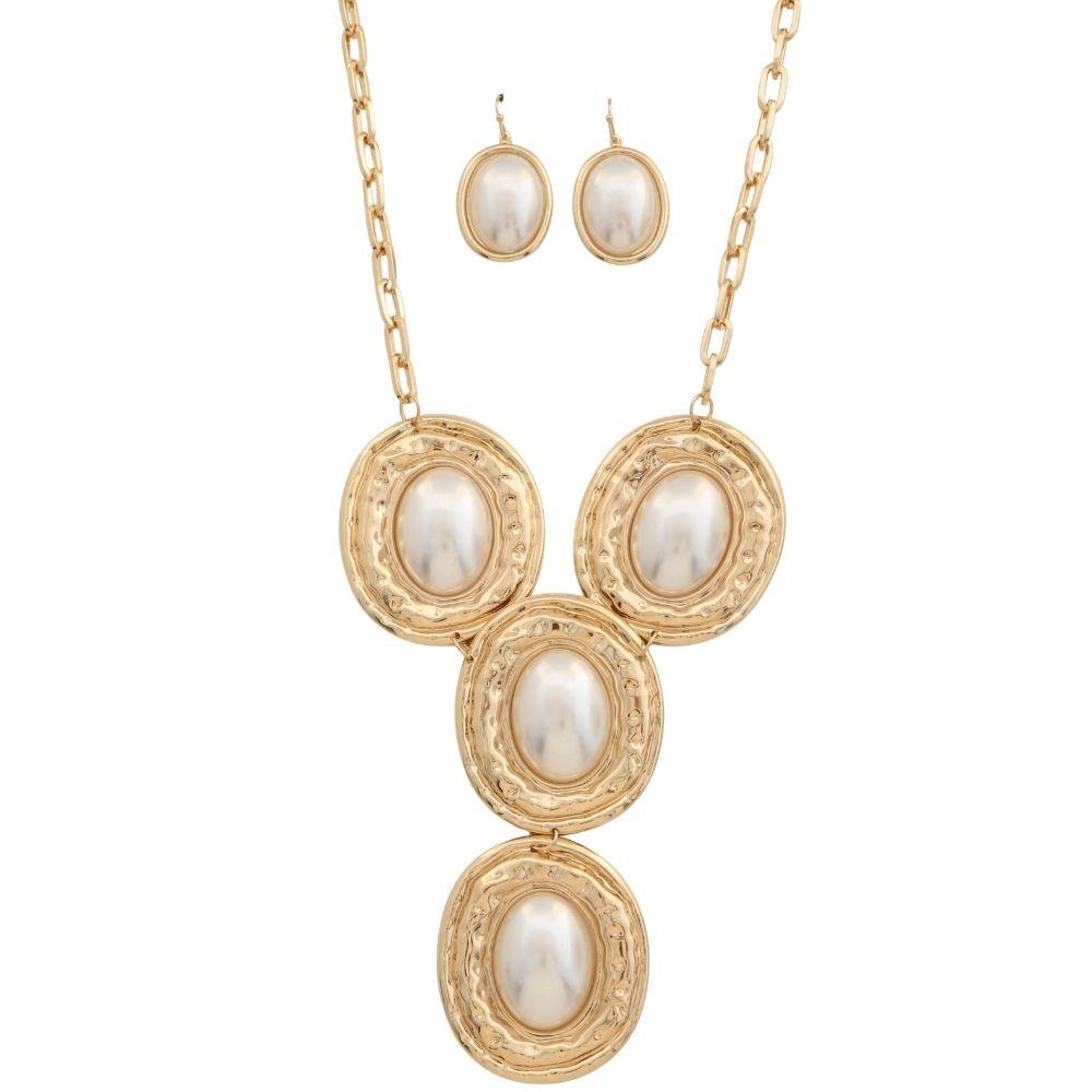 METAL PEARL MIX ROUND CHAIN NECKLACE EARRING SET