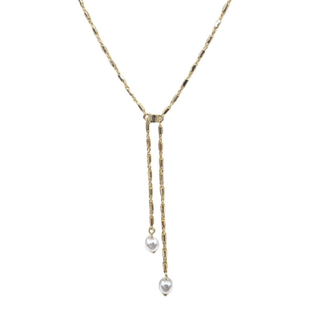18K BRASS DOUBLE PEARL DROP NECKLACE