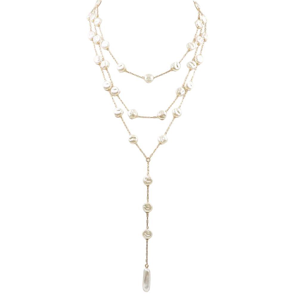 PEARL BEAD STATION METAL LAYERED NECKLACE