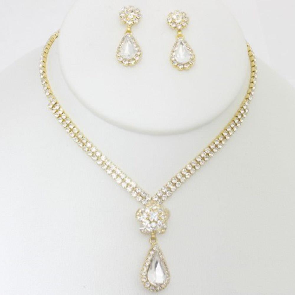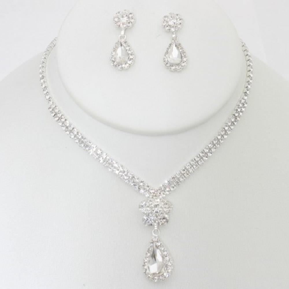 RHINESTONE TEARDROP NECKLACE EARRING SET