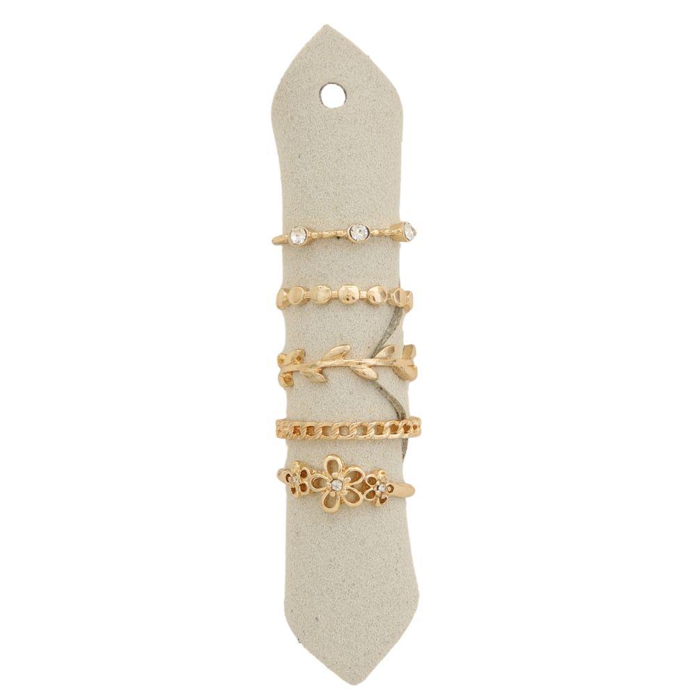 PEARL BEAD LEAF METAL ASSORTED RING SET