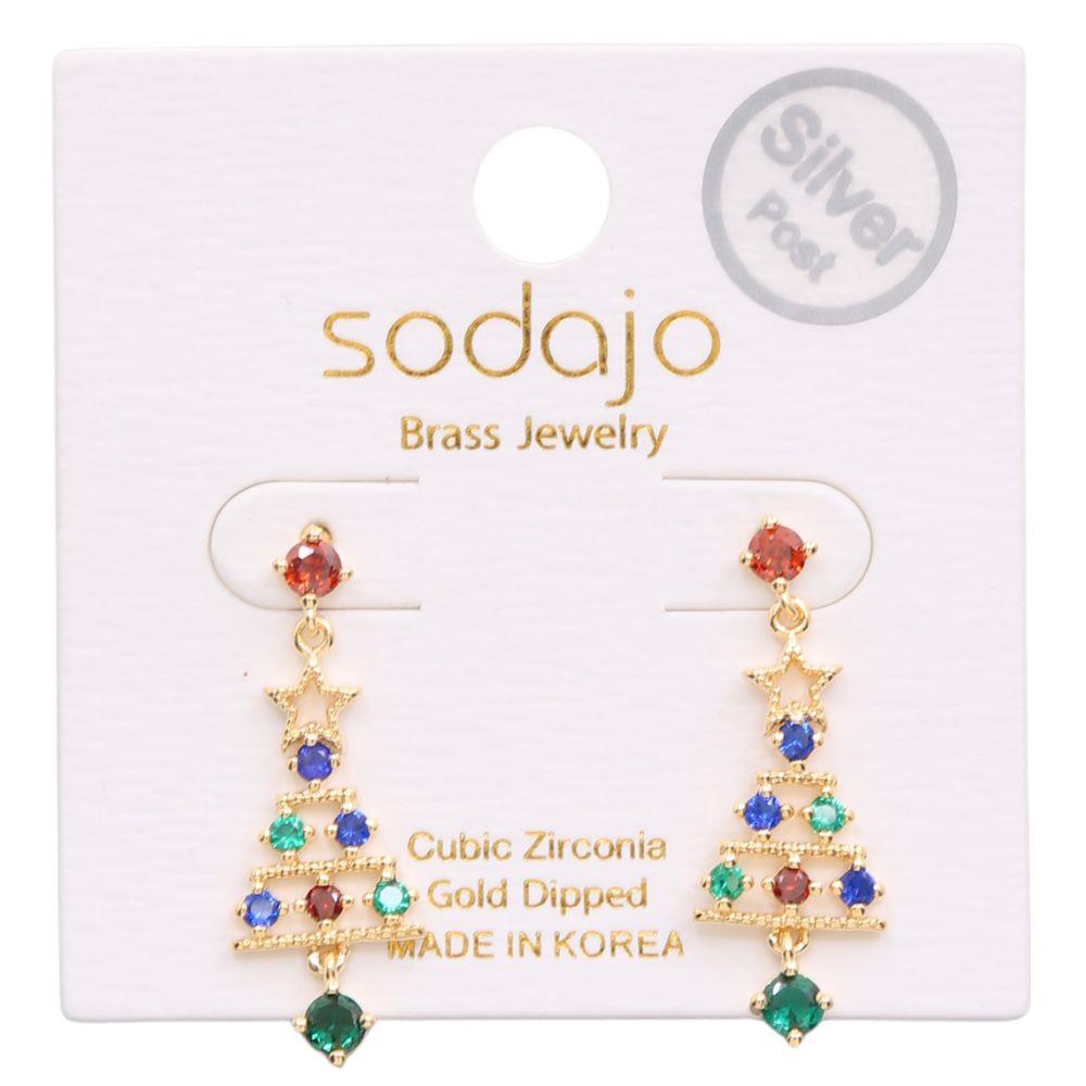 SODAJO CHRISTMAS TREE CZ GOLD DIPPED EARRING