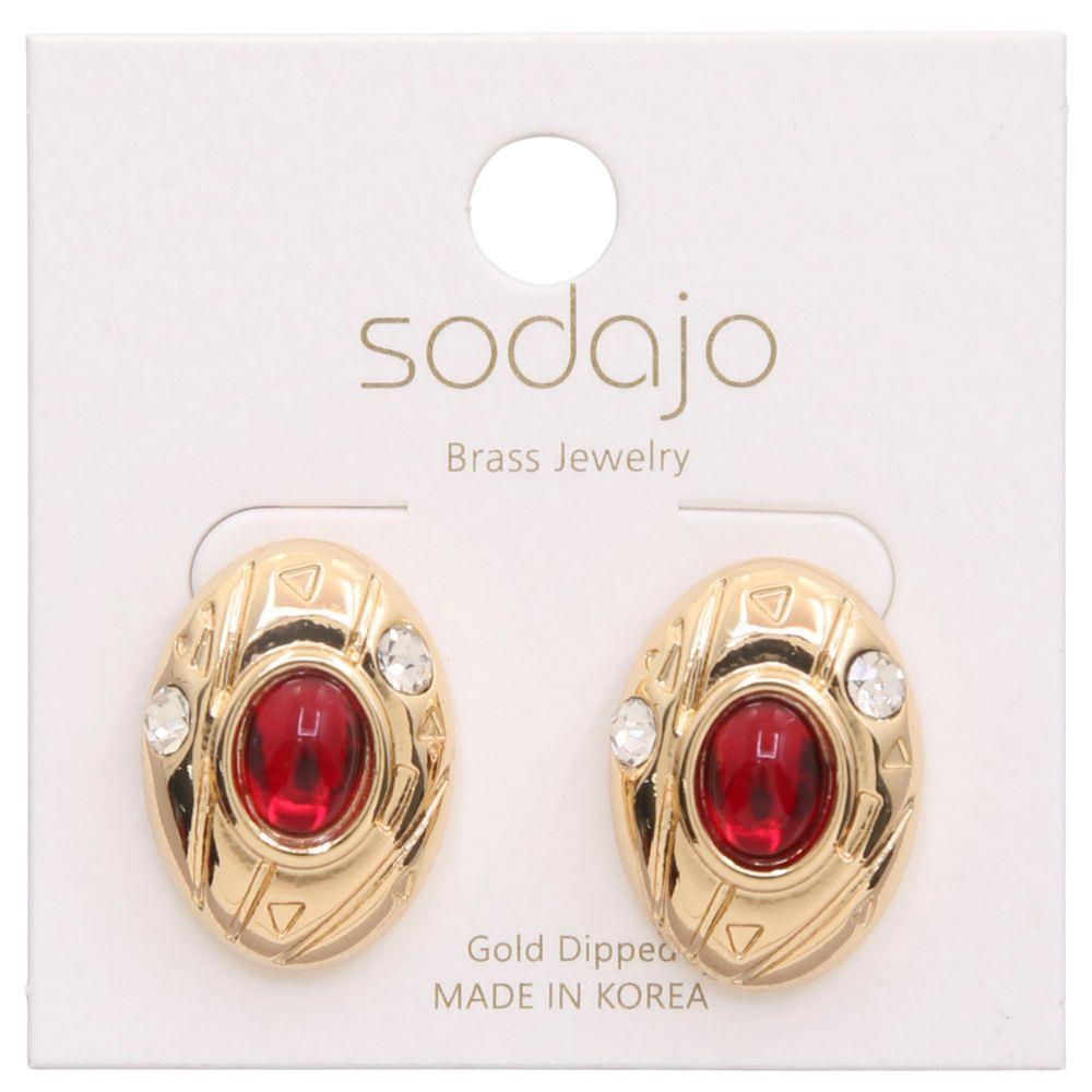 SODAJO OVAL STONE METAL GOLD DIPPED EARRING