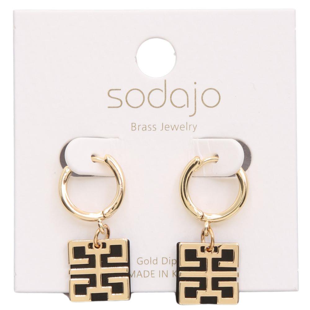SODAJO GREEK PATTERN HUGGIE GOLD DIPPED EARRING