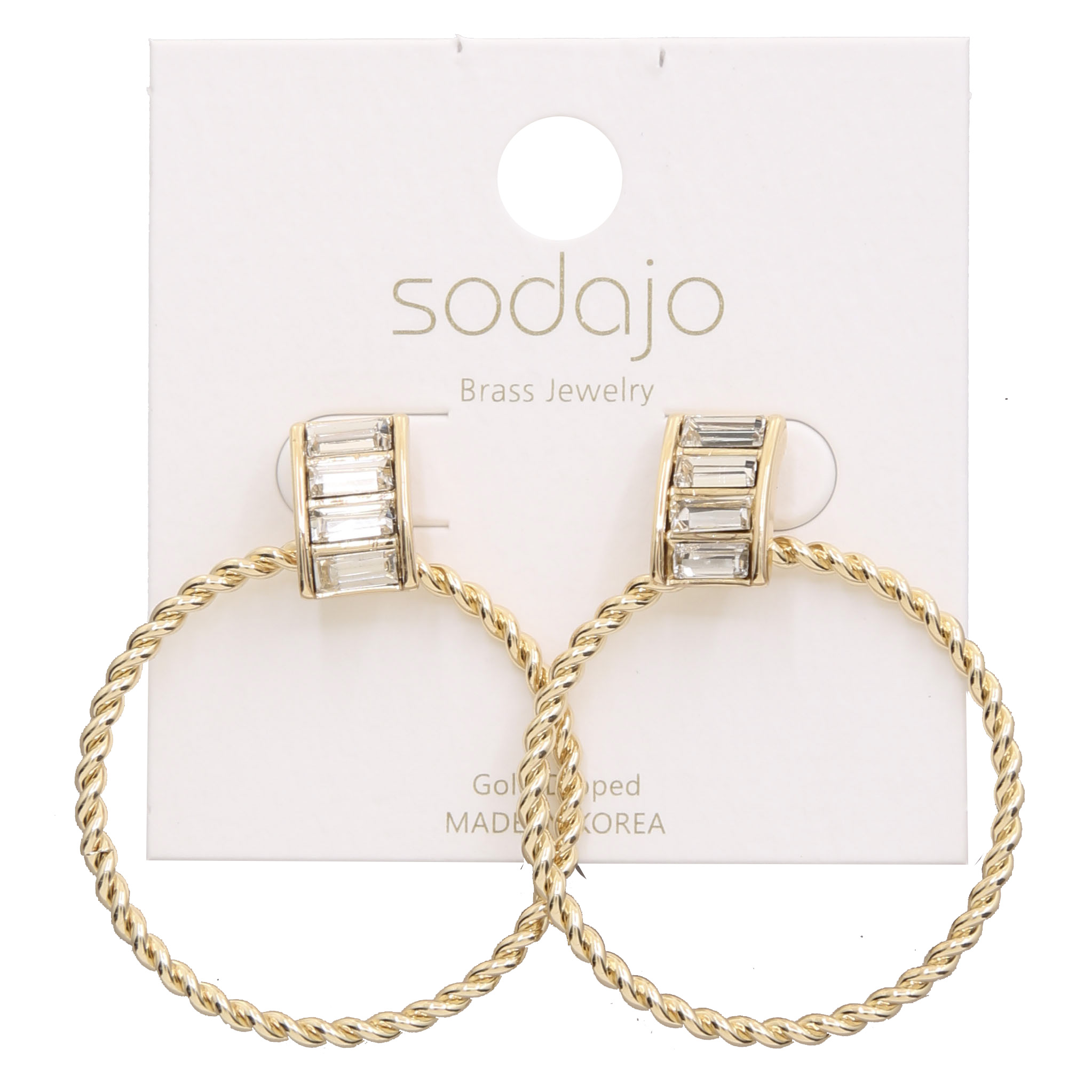 SODAJO CRYSTAL BAR TWISTED HOOP GOLD DIPPED EARRING