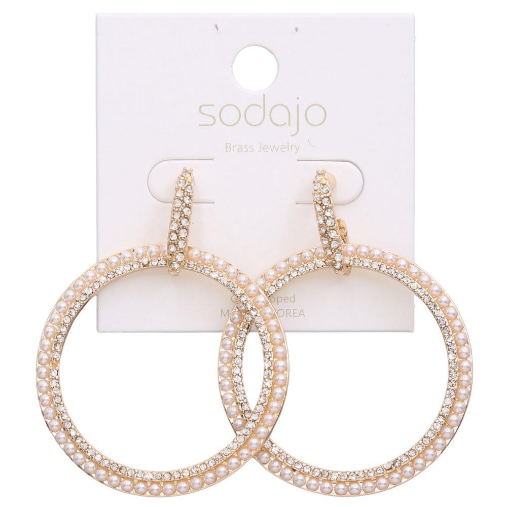 SODAJO PEARL BEAD CRYSTAL ROUND DANGLE EARRING