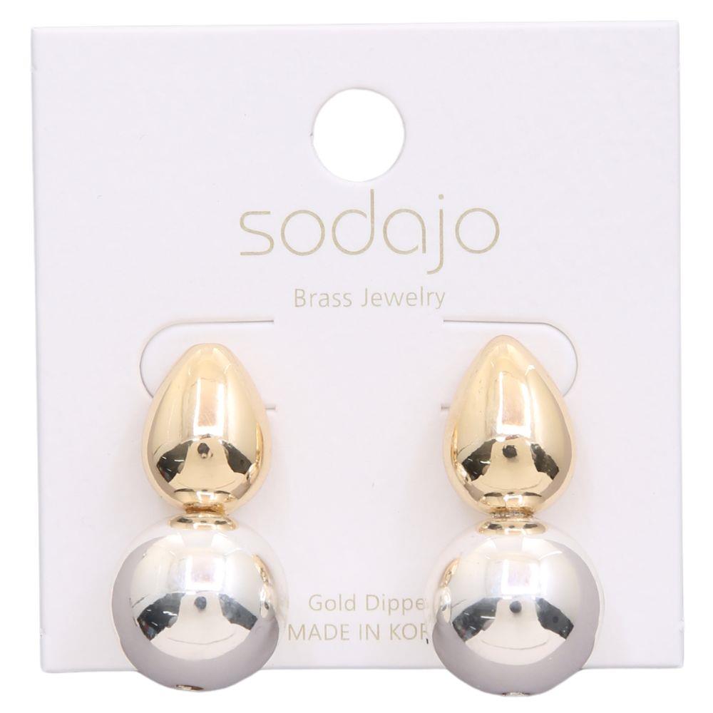 SODAJO TWO TONE TEARDROP METAL GOLD DIPPED EARRING