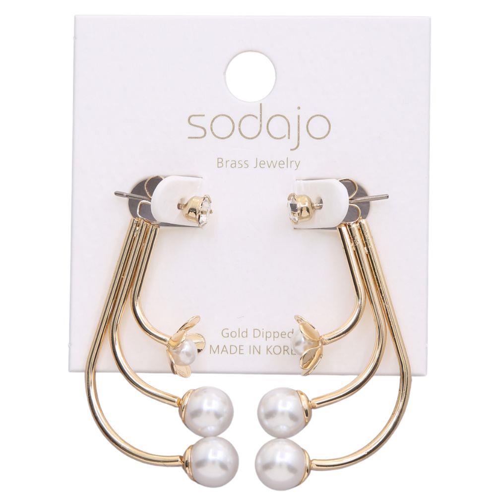 SODAJO FLOWER SHAPE PEARL BEAD GOLD DIPPED EARRING