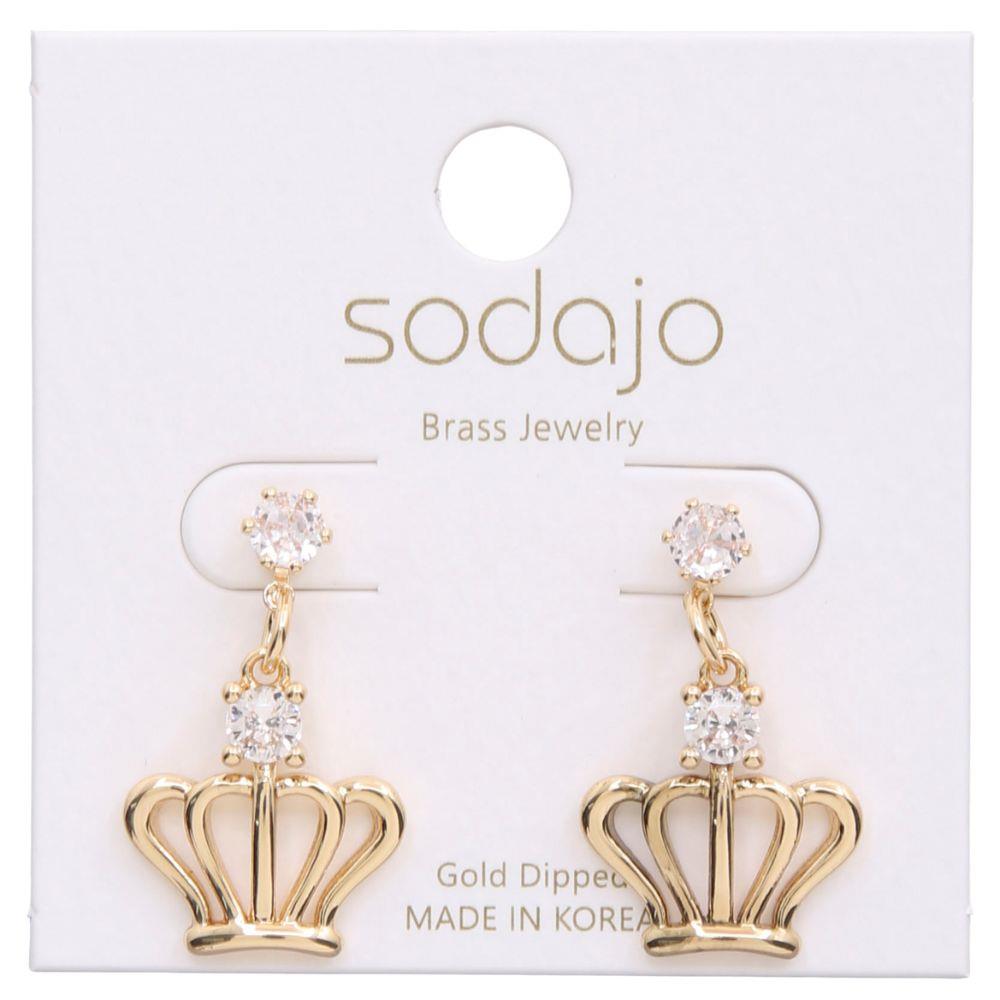 SODAJO CROWN CRYSTAL GOLD DIPPED DANGLE EARRING