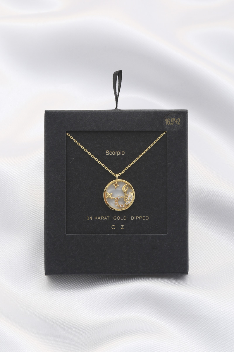 ROUND HOROSCOPE ZODIAC SIGN PENDANT 14 KARAT GOLD DIPPED NECKLACE