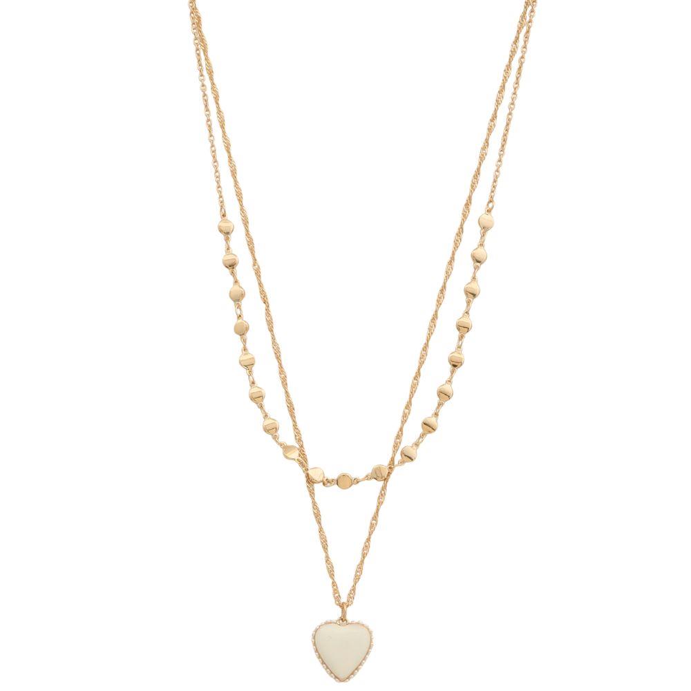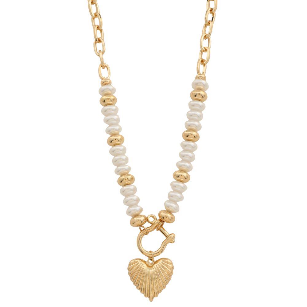 LIBED HEART PEARL METAL BEAD NECKLACE
