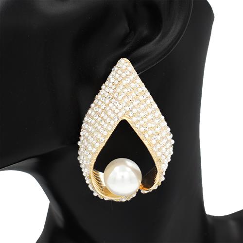 TEXTURED METAL PEARL DROP DANGLE EARRING