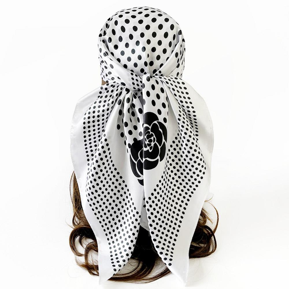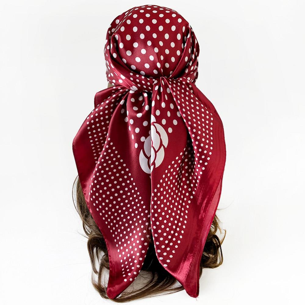 SILKY POLKA DOT ROSE PATTERN BANDANA SQUARE NECK SCARF