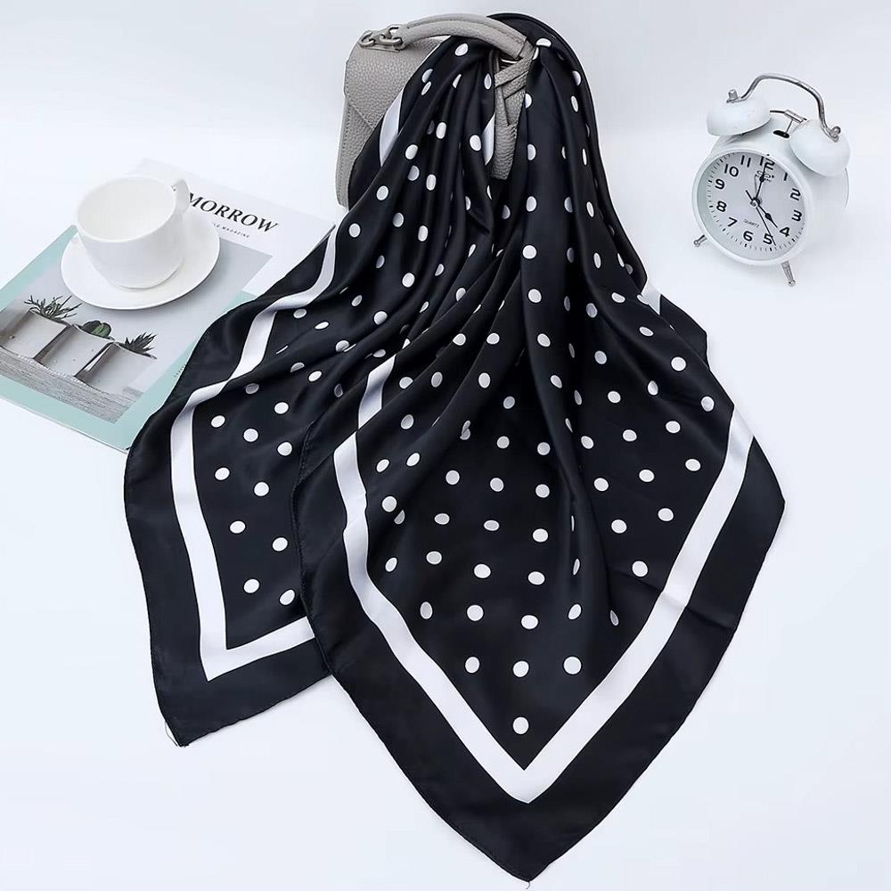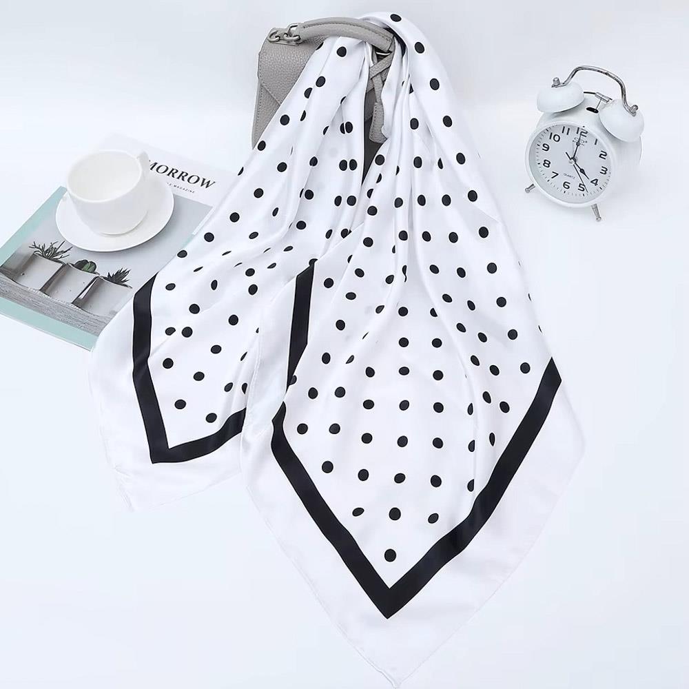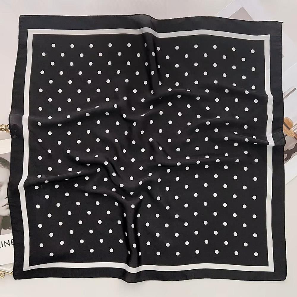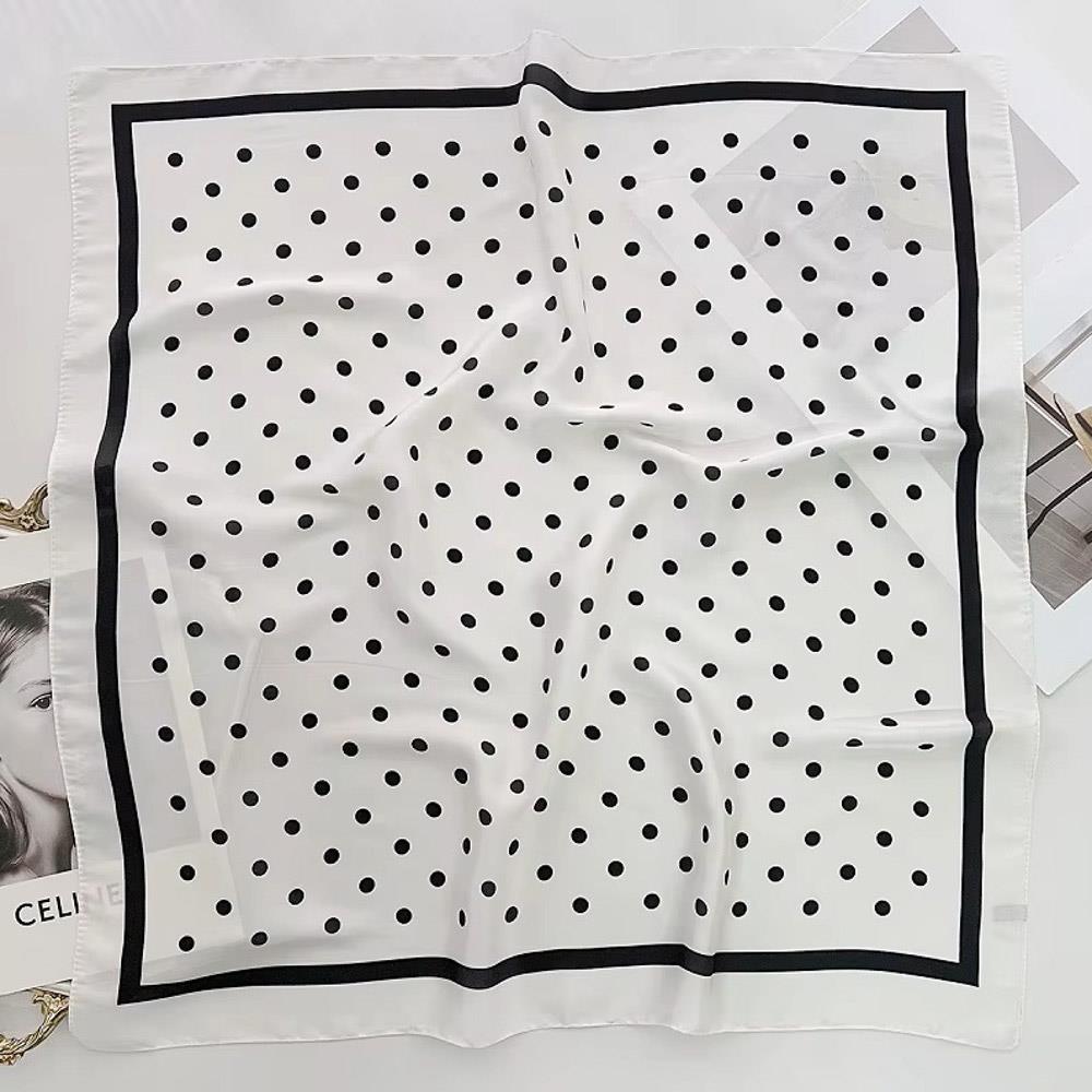 SILKY POLKA DOT VINTAGE BORDER BANDANA SQUARE NECK SCARF