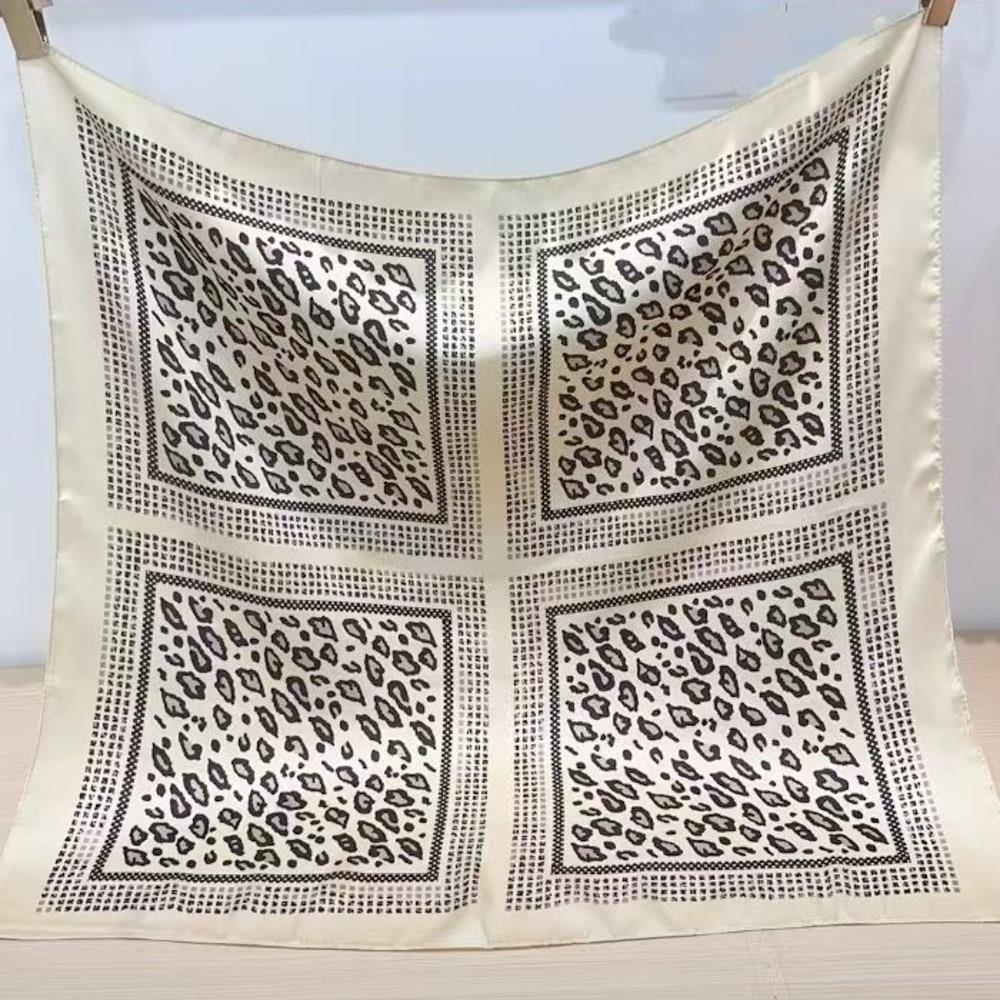 SILKY LEOPARD PATTERN BANDANA SQUARE NECK SCARF