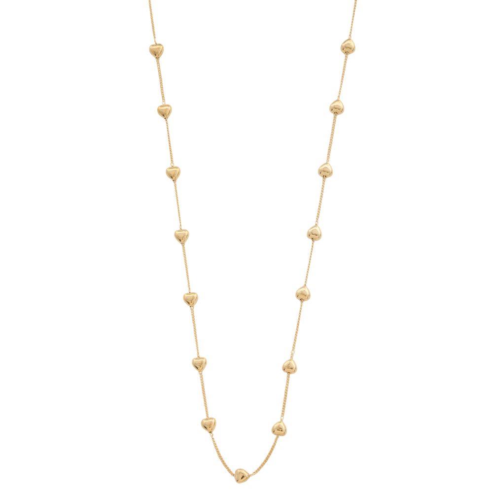 SODAJO PUFFY HEART CHARM STATION GOLD DIPPED NECKLACE