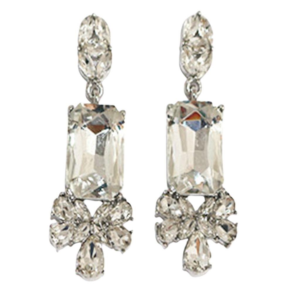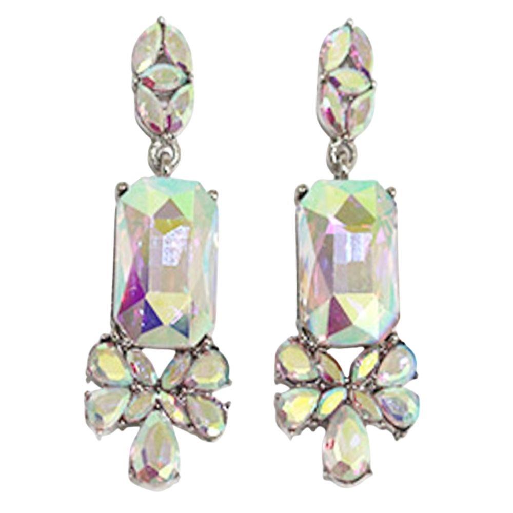 CRYSTAL RECTANGLE DROP DANGLE EARRING