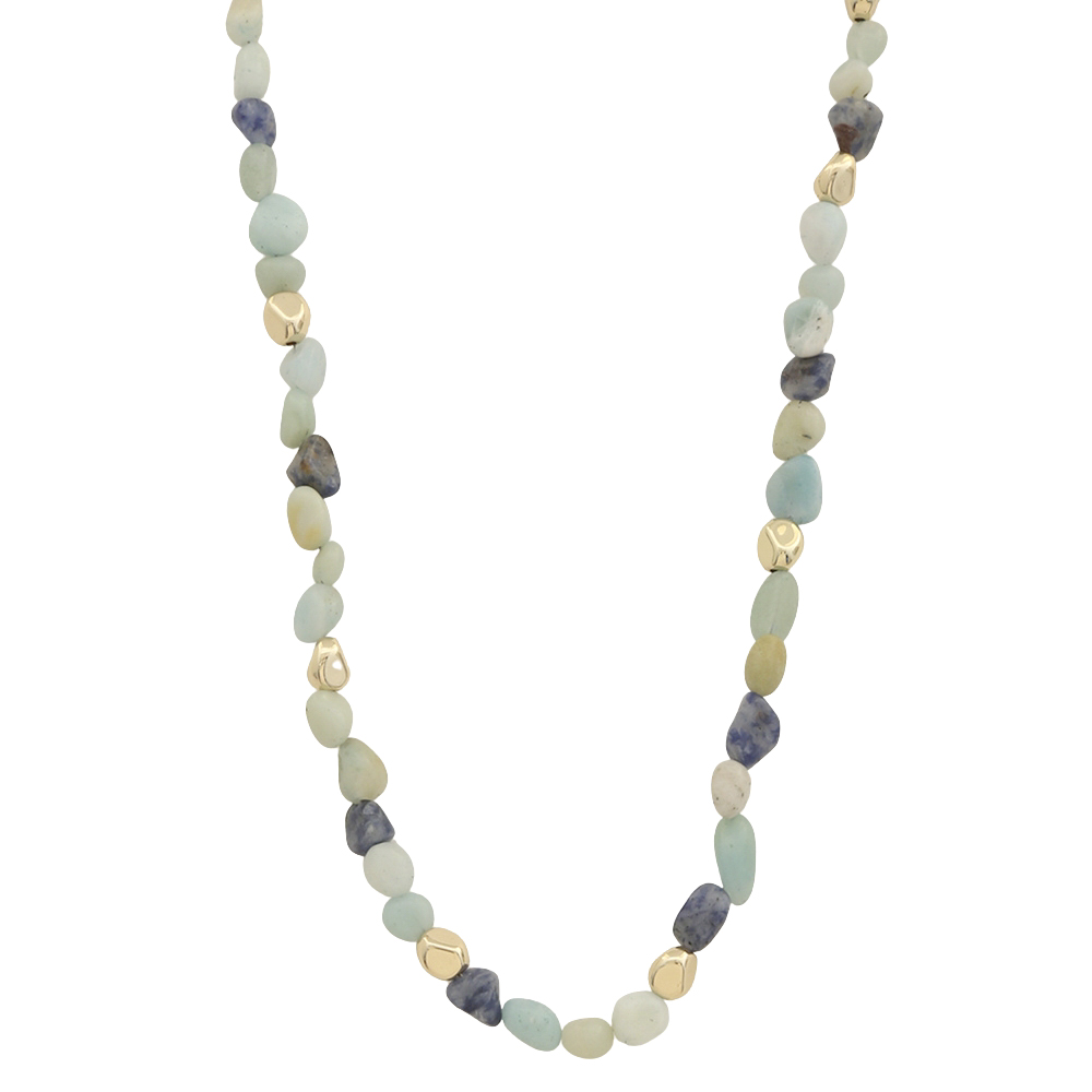 COLOR STONE METAL BEAD NECKLACE