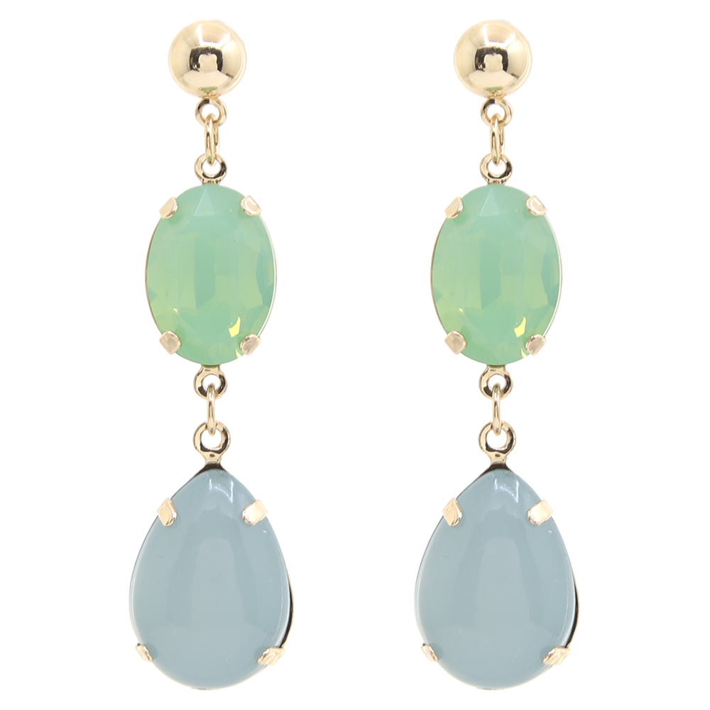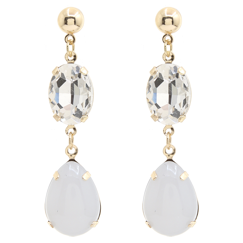 OVAL CRYSTAL DANGLE TEARDROP GEMSTONE EARRING