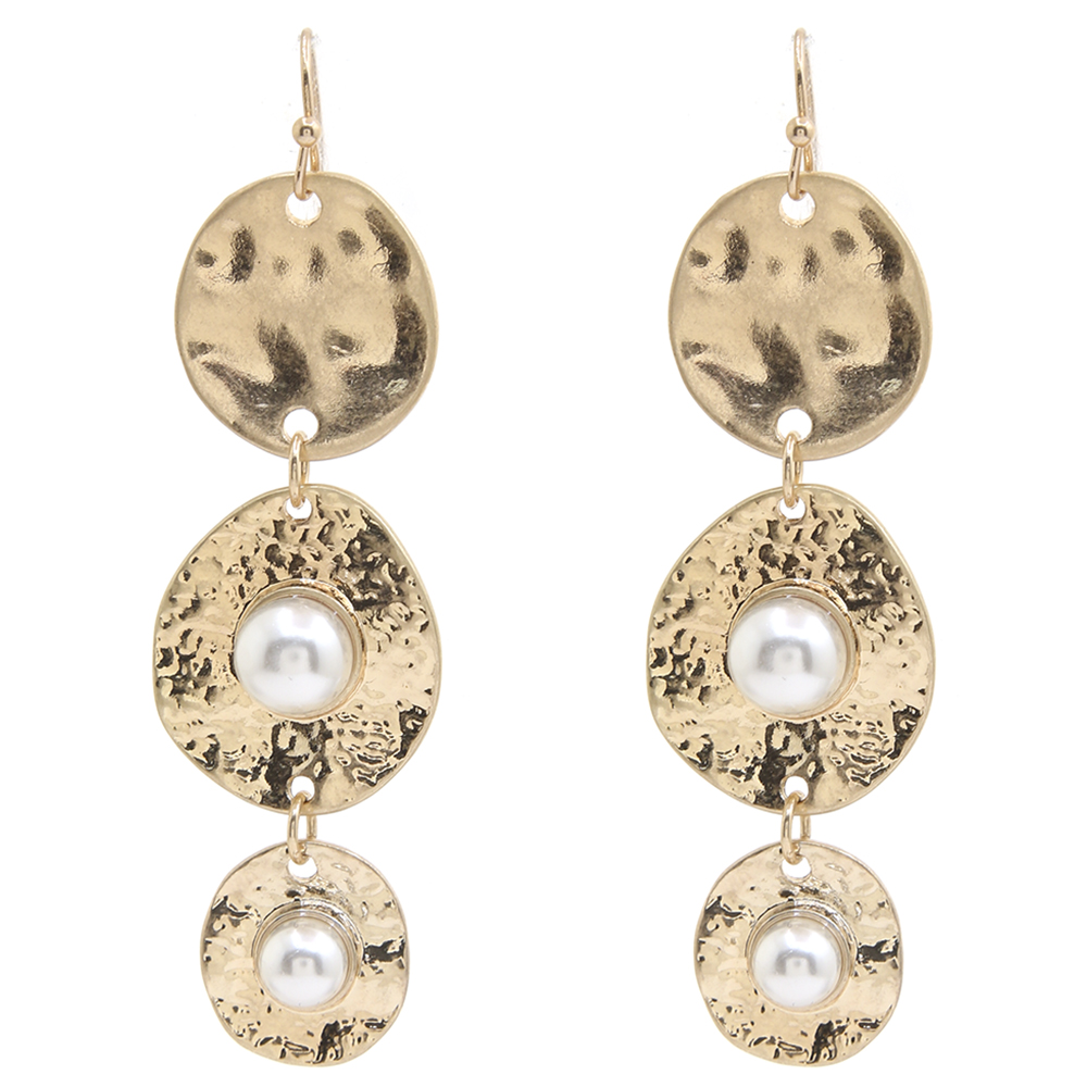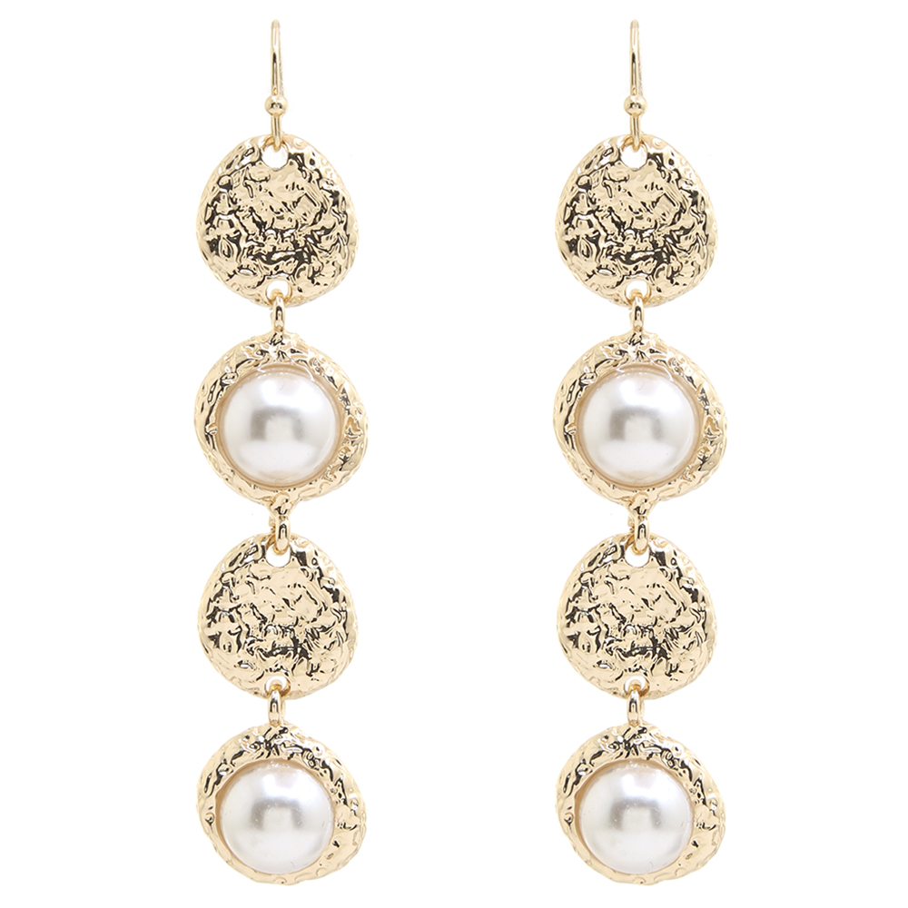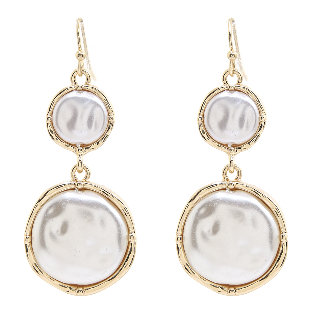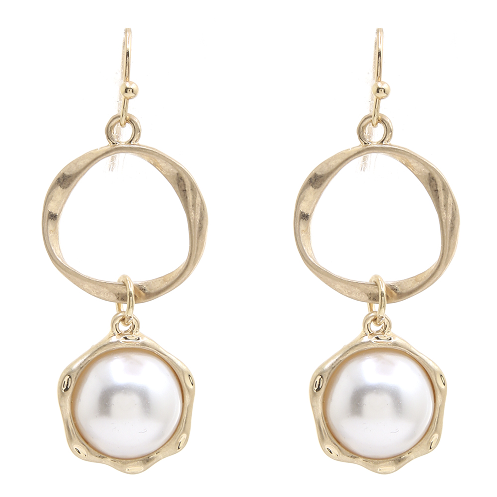 ROUND METAL PEARL DROP EARRING