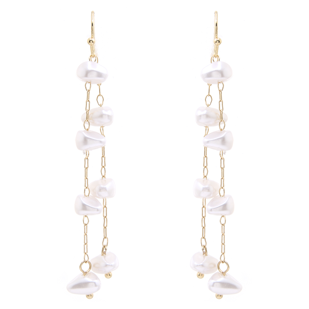 DOUBLE CHAIN PEARL LINK DROP EARRING