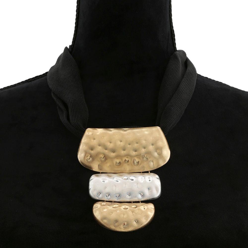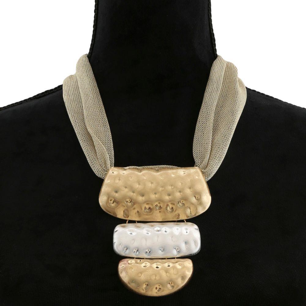 TWO TONE METAL BAR PENDANT FABRIC NECKLACE