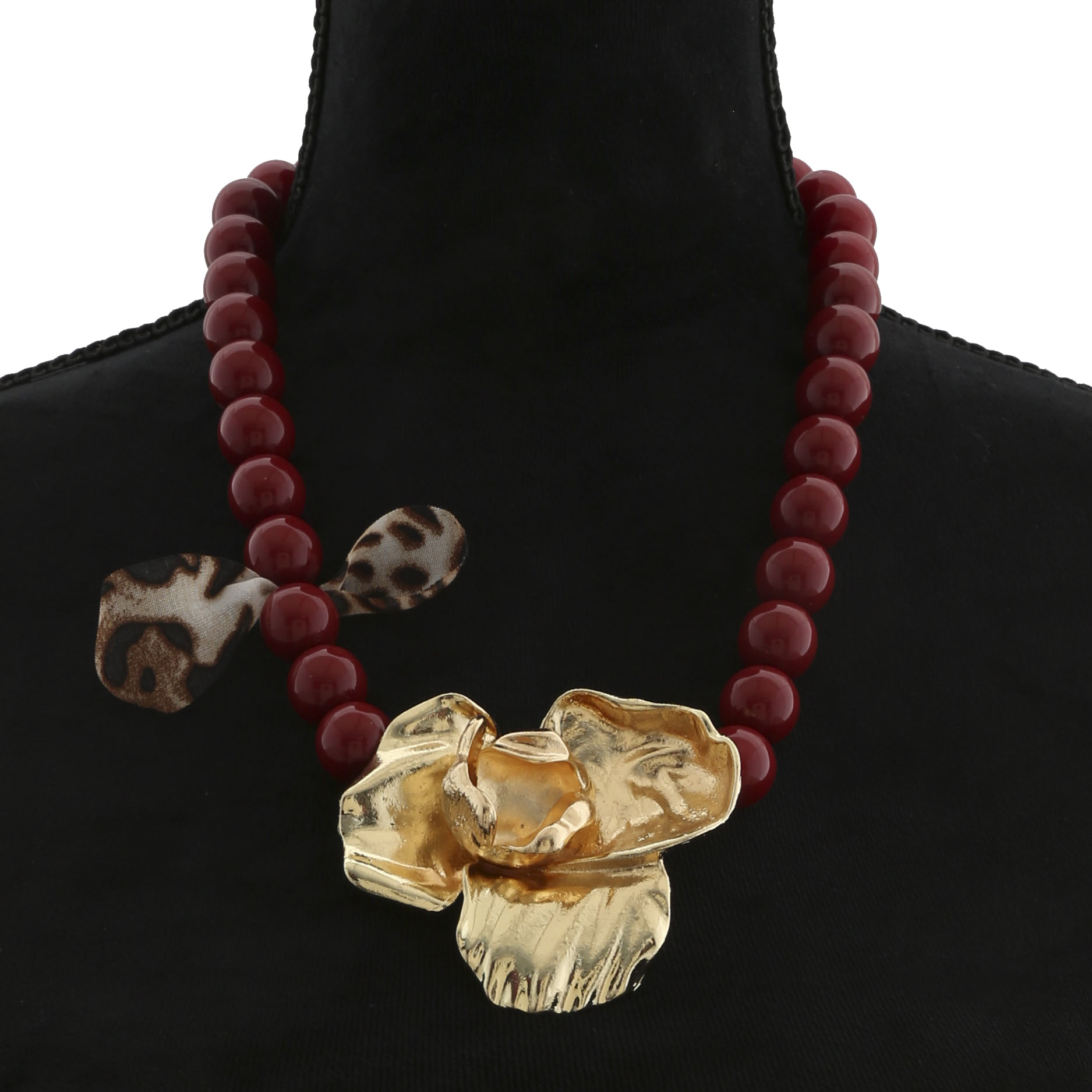 ANIMAL PRINT FABRIC BEADED NECKLACE